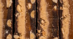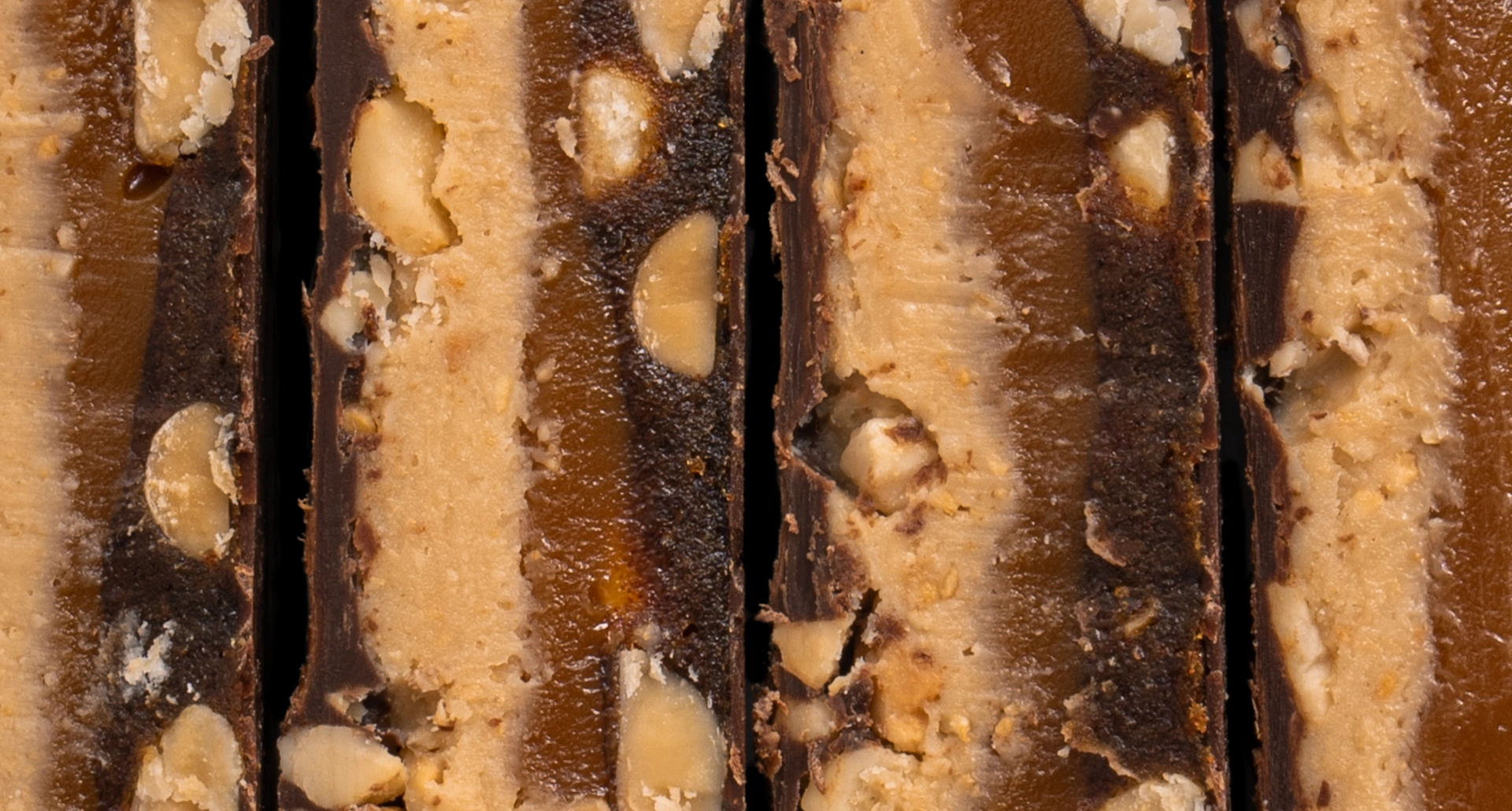 Caramelo (24,1%) (extracto de coco, extracto concentrado de sumo de maçã, amido de milho), tâmaras, amendoins (20%), cajus (16,6%), cobertura de chocolate (13,2%) (massa de cacau, edulcorante maltitol, manteiga de cacau, cacau em pó desengordurado, emulsificante lecitina, aromatizante natural de baunilha), sal rosa dos Himalaias.