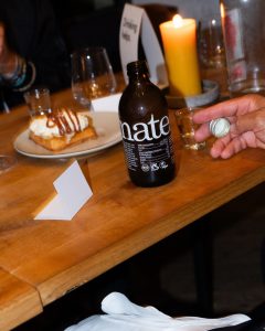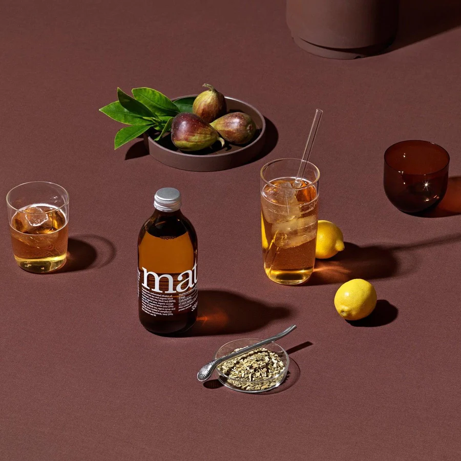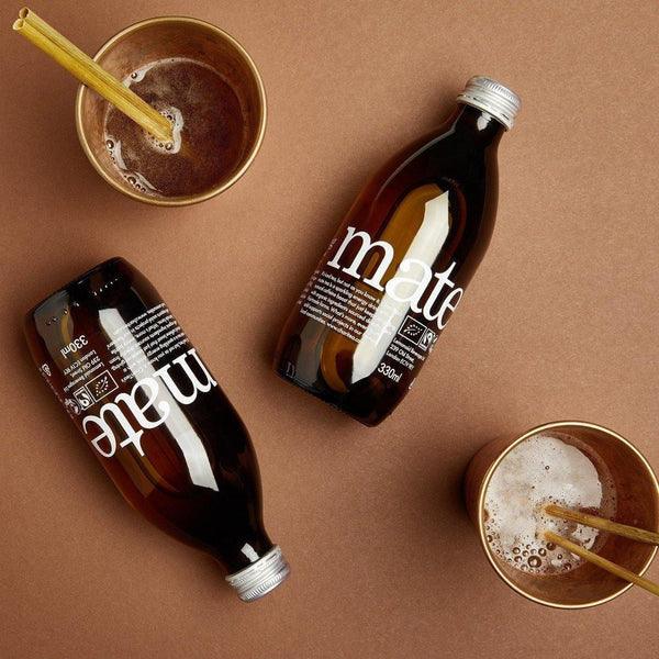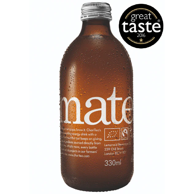 Infusão de chá mate orgânico e chá preto orgânico (água, mate 1,6%, chá preto) (88%), xarope de agave orgânico, suco de laranja orgânico (3%), sumo de limão orgânico (3%), dióxido de carbono.