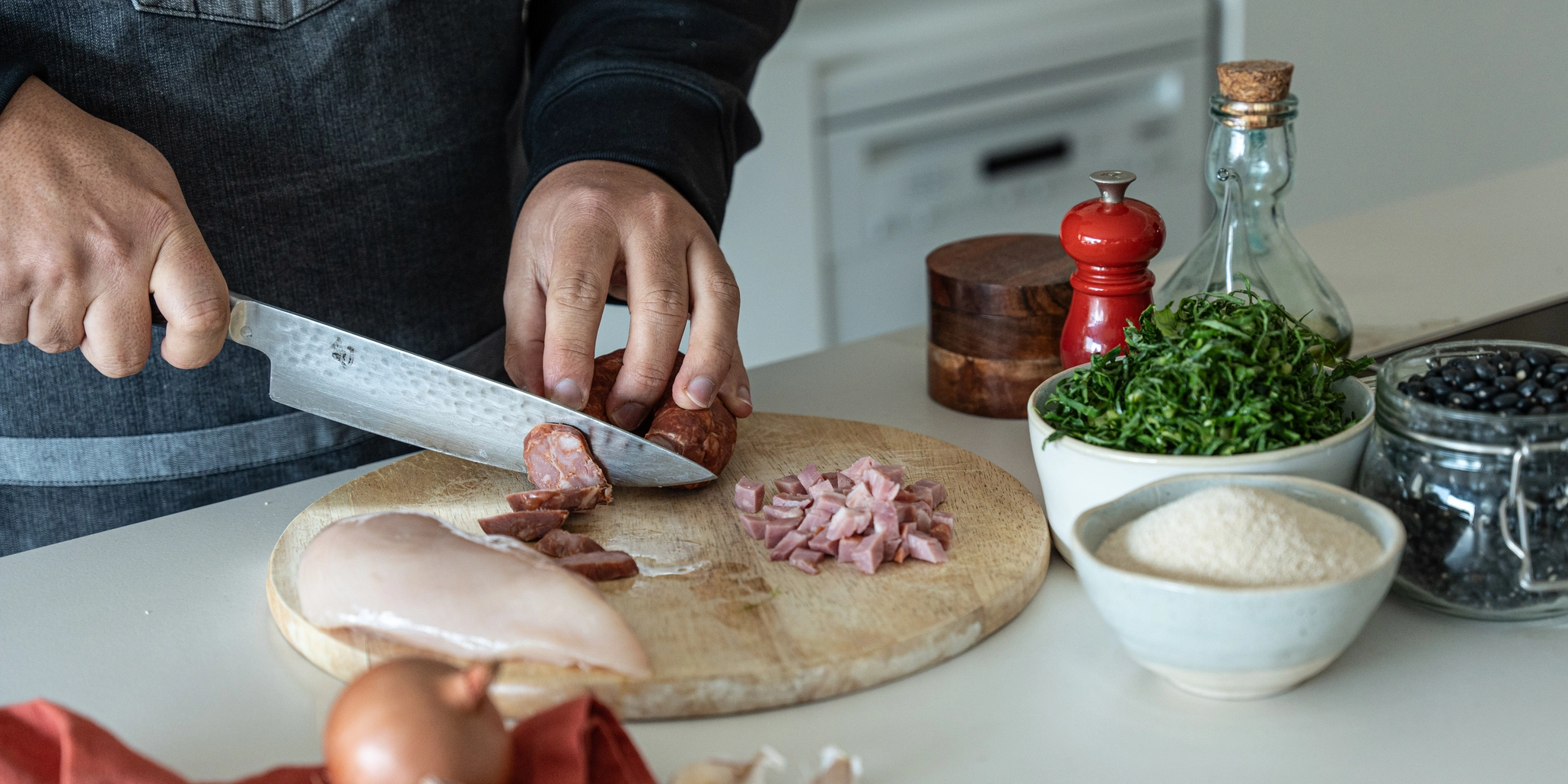 - Proteínas magras: frango, chouriça e bacon de peru.